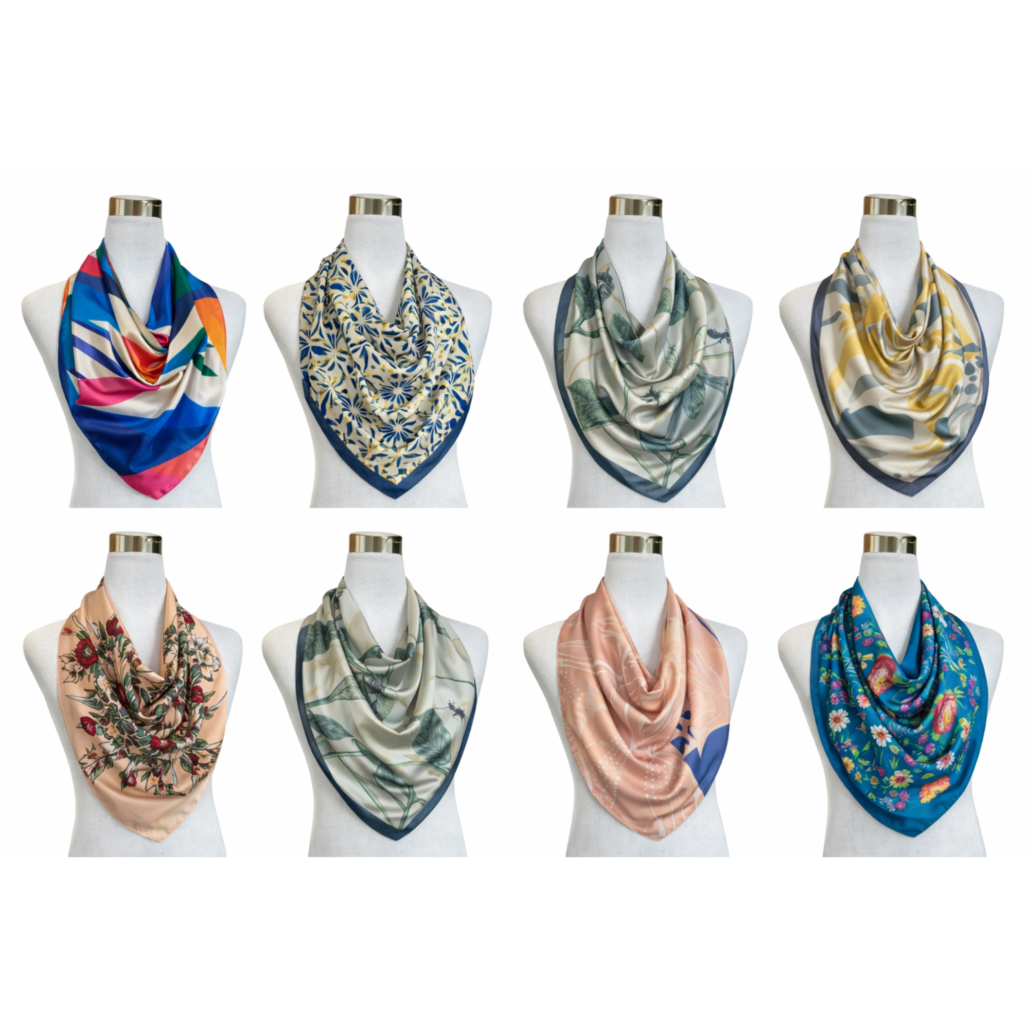 Gracias a su formato cuadrado de 70 x 70 cm, puede utilizarse de múltiples maneras: al cuello, en el cabello, como accesorio para carteras, anudado a la muñeca o como complemento decorativo. Los diseños florales, clásicos y atemporales, permiten combinarlo fácilmente con prendas neutras o usarlo como punto focal en un look más sobrio.